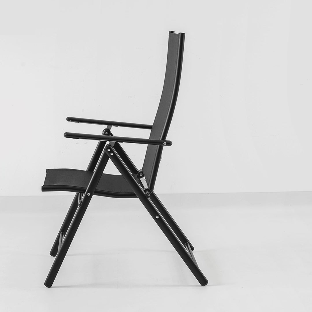 Das durchdachte Design konzentriert sich auf Langlebigkeit und Pflegeleichtigkeit. Der Stuhl ist mit einem hochwertigen, strapazierfähigen Bezug aus Textilene ausgestattet, einem Material, das für seine Wetterbeständigkeit und Atmungsaktivität bekannt ist. Es ist zudem UV-resistent und trocknet schnell, was ihn zum idealen Begleiter für jede Jahreszeit macht. Die robuste Rahmenkonstruktion sorgt für Stabilität und Sicherheit, sodass Sie sich jederzeit vollkommen entspannen können.